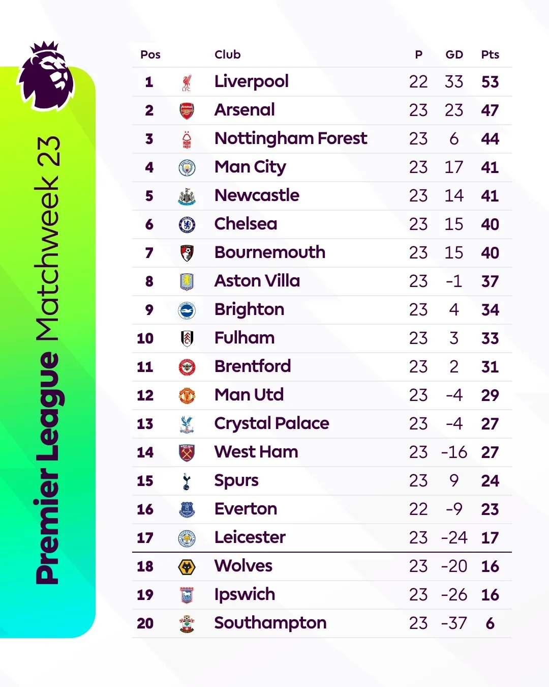 19. Ipswich Town ❌ - Good fight, but not enough to stay up.